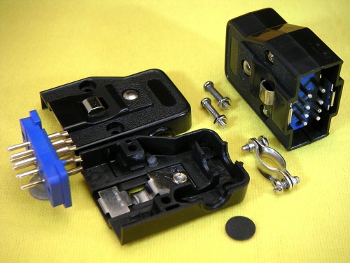 Connectorbehuizing voor 15-polige D-sub connector, kunststof, achterinvoer, ronde kabel